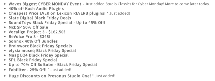 Many of you have probably found links to Waves.com and other plugin websites offering special deals on their plugins today.